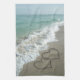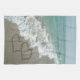 Coeurs romantiques et nostalgiques entrelacés tirés dans le sable sur la plage. Sable blanc bronzé et bleu clair avec eau blanche des vagues. Un joli cadeau de jour valentin ou juste une plage ou un décor de bord de mer côtier.