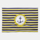 Motif rayé jaune et bleu-foncé nautique élégant avec l'ancre au milieu.