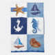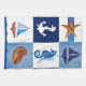 Dessin original peint à l'aquarelle par Sandra Gale, avec des blocs de dessins sur le thème nautique comme le poisson étoilé, l'ancre, le navire, la tortue et les coquilles. Conception idéale pour l'été, les maisons de plage, les bungalows ou pour tous ceux qui aiment la plage, l'océan ou le poisson.