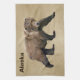 Comprend une peinture numérique d'un ours Kodiak sur un parchemin neutre, ou vieux papier, arrière - plan. Le texte "Alaska" apparaît également. L'Ours de Kodiak (Ursus arctos middendorffi), une sous-espèce de l'ours brun, ou grizzli, est le plus grand ours du monde. Un mâle adulte peut mesurer plus de 10 mètres de haut lorsqu'il est debout sur ses pattes postérieures et peser plus de 1500 livres - un spectacle à voir. Un ours du zoo de Bismarck, dans le Dakota du Nord, aurait pesé jusqu'à 2 400 livres. Les ours vivent sur les îles de l'archipel Kodiak de l'Alaska. Aujourd'hui, il y a environ 3500 ours kodiak et leur nombre augmente en raison de l'état généralement excellent de leur habitat, y compris un poing suffisant pour se nourrir. Ils sont appelés "takuka-aq" en Alutiiq, la langue maternelle du peuple dans cette région. On pense que les ours y ont été isolés depuis la fin de la dernière ère glaciaire, il y a plus de 12 000 ans. Bien qu'ils soient le plus grand carnivore terrestre leur régime alimentaire comprend de grandes quantités d'herbe, d'autres plantes et des baies. Aujourd'hui, il y a environ 3500 ours kodiak et leur nombre augmente en raison de l'état généralement excellent de leur habitat, y compris un nombre suffisant de poissons à manger. En raison de l'abondance des ressources alimentaires, les ours Kodiak ont une aire de répartition plus petite que les autres ours bruns et n'ont pas besoin de défendre les territoires. Les Alutiiq chassaient les ours pour leur nourriture, leurs vêtements et leurs outils. Des flèches, des lances et beaucoup de courage étaient nécessaires pour la chasse. Les têtes d'ours étaient généralement laissées dans le champ comme un signe de respect de l'esprit des ours.