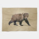 Une peinture numérique d'un ours Kodiak sur un parchemin neutre, ou vieux papier, arrière - plan. L'Ours de Kodiak (Ursus arctos middendorffi), une sous-espèce de l'ours brun, ou grizzli, est le plus grand ours du monde. Un mâle adulte peut mesurer plus de 10 mètres de haut lorsqu'il est debout sur ses pattes postérieures et peser plus de 1500 livres - un spectacle à voir. Un ours du zoo de Bismarck, dans le Dakota du Nord, aurait pesé jusqu'à 2 400 livres. Les ours vivent sur les îles de l'archipel Kodiak de l'Alaska. Aujourd'hui, il y a environ 3500 ours kodiak et leur nombre augmente en raison de l'état généralement excellent de leur habitat, y compris un poing suffisant pour se nourrir. Ils sont appelés "takuka-aq" en Alutiiq, la langue maternelle du peuple dans cette région. On pense que les ours y ont été isolés depuis la fin de la dernière ère glaciaire, il y a plus de 12 000 ans. Bien qu'ils soient le plus grand carnivore terrestre leur régime alimentaire comprend de grandes quantités d'herbe, d'autres plantes et des baies. Aujourd'hui, il y a environ 3500 ours kodiak et leur nombre augmente en raison de l'état généralement excellent de leur habitat, y compris un nombre suffisant de poissons à manger. En raison de l'abondance des ressources alimentaires, les ours Kodiak ont une aire de répartition plus petite que les autres ours bruns et n'ont pas besoin de défendre les territoires. Les Alutiiq chassaient les ours pour leur nourriture, leurs vêtements et leurs outils. Des flèches, des lances et beaucoup de courage étaient nécessaires pour la chasse. Les têtes d'ours étaient généralement laissées dans le champ comme un signe de respect de l'esprit des ours.