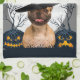Bouledogue français bande-dénommé adorable utilisant un casquette de sorcières dans une correction mignonne éffrayante de citrouille de Halloween avec une pleine lune et des battes volant à l'arrière-plan. Voir plus des articles avec cette conception à mon magasin www.DoggyStyleDesignStudio.com de Zazzle