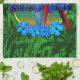 Je suis sur l'illustration et les conceptions de temps d'île. Le temps d'île est une référence à la façon dont la vie est sur des îles, les gens sont plus susceptible de ralentir et apprécier la vie. Plutôt que la foire d'empoigne normale nous vivons dedans sur la terre principale. Échouez la peinture de coucher du soleil avec des palmiers, un perroquet coloré été perché le temps d'île de mots, avec des planches de surf et des fleurs de ketmie, ensemble dans un cadre en bambou ovale.