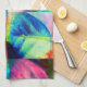 L’oeuvre abstraite de ZoeSPEAK sur cette serviette de cuisine a commencé comme la photo originale de Zoe d’une feuille d’un plante de raisin de mer. Le design explore la variété de combinaisons de couleurs provenant des zones lumineuses et ombragées de la feuille lisse, presque ovale, et de l'arrière - plan. On y trouve des rouges vifs, des roses, des lavandes, de l'aqua et des bleus foncés, des verts oranges et foncés et clairs. Les veines et la tige de la feuille ajoutent dimension et couleurs.