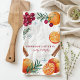 Ajoutez une touche festive à votre cuisine grâce à cette serviette de cuisine de Noël personnalisée qui comprend un bel agencement de canneberges, d'oranges, de bâtons de cannelle et de sprigs de romarin. Le design aquarelle apporte une ambiance de vacances rustique et cosy à votre décor de cuisine, parfait pour la saison. Customisez la serviette avec votre nom ou un message spécial pour créer un souvenir de vacances unique. Cette serviette est un délicieux ajout à toute routine de pâtisserie ou de cuisine de vacances.