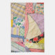 Une courtepointe folle composée de différents tissus à motifs disposés dans un mélange éclectique avec couture zig-zag
