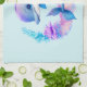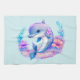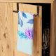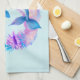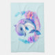 Serviette de cuisine avec une adorable illustration. Un dauphin bleu et violet entouré de jolies fleurs sous-marines colorées.