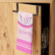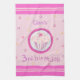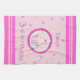 16" x 24" Serviette de cuisine en coton 100% coton à armure toile avec l'image d'un cupcake au gel rose et saupoudré de points en cercle blanc avec une large bordure rose sur un arrière - plan pointillé rose pâle. Bordures rayées claires et roses foncées. Sauf pour le mot "anniversaire", tout le texte est personnalisable. Voir serviettes assorties, serviettes en papier, set de table en tissu, set de table en papier et dessous de verre. Voir toute la collection de serviettes de cuisine d'anniversaire dans le FOOD/BEV| Section Linens.