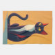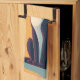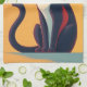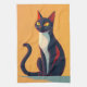 Un chat noir et blanc d'aspect rétro, ressemblant à des chats des années 50, ses yeux jaunes ouverts dans la curiosité crée une serviette de cuisine mignonne et charmante.