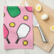 Cute joueur de pickleball cuisine ou serviette de cour avec des pagaies chaudes rose et cool vert et des boules jaunes motif sur un arrière - plan rose pour votre joueur de pickleball préféré.