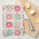 Ce mignon beigne et arroser le design motif sports plusieurs saveurs différentes. Il y a de la glace rose avec des tourbillons, du glaçage bleu et rose avec des arroses, et même de la puce chocolat vanille. Tout sur un arrière - plan de couleur avoine pour équilibrer tout ce doux. Yum !