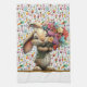A Cute And Colorful Kitchen Dish Towel For Your Easter Decor Designed With A Bunny Holding A Bouquet of Flowers