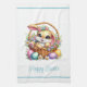 This kitchen towel is shown in white with a festive Easter bunny print.