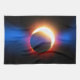 Une éclipse solaire (la lune qui couvre le soleil), avec l'effet typique "lentille-flamme" en bleu.