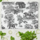 Motif en toile noir et blanc monochrome avec chevaux et arbres pour un décor rustique de campagne, à l'anglaise, française ou américaine. Le cheval est un animal majestueux qui incarne le pouvoir spirituel de l'indépendance, de la liberté, de la noblesse, de l'endurance, de la confiance, du triomphe, de l'héroïsme et de la concurrence. Son symbole est associé à la force, au courage et à la liberté.