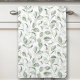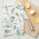 Serviette de cuisine avec des feuilles vert sauge superposant sur l'arrière - plan blanc. Cette serviette de cuisine ajoute une touche fraîche et moderne à votre espace - Kate Eden Art