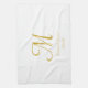 Monogramme blanc et or simple Nom de la serviette de cuisine