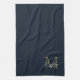 Elegant Script Metallic Navy Blue Gold Monogram kitchen towel