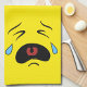 Ce triste petit visage d'émoticônes est en train de passer une mauvaise journée. Face en pleurant avec un arrière - plan jaune vif. Triste Pleure Face Emoji Drôle serviette de cuisine.