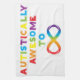 Design fait avec amour pour la Sensibilisation sur l'autisme. Les lettres arc-en-ciel forment l'expression "Autistiquement Awesome To Infinity" avec un symbole infinity.