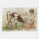 Cette serviette de cuisine vintage avec du charme a une image d'une fille et d'un veau là-dessus.