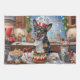 Découvrez la joie de la cuisine de vacances avec cette scène enchanteresse avec un chef gai entouré de gâteries de Noël et de décorations festives. Une célébration chaleureuse des traditions les plus douces de la saison.