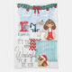 Festive Noël Cuisson aquarelle Cuisine Serviettes de thé Les serviettes de thé présentent une jolie aquarelle illustrant une jeune fille qui cuisine dans une cuisine festive tandis que la neige tombe avec son chien portant un chapeau de Père Noël. Le texte "C'est le moment le plus merveilleux de l'année" est écrit en écriture calligraphie lettrée à la main. Parfait pour Noël et cadeaux de vacances. Conçu par ©Evco Holidays www.zazzle.com/store/evcoholidays