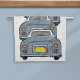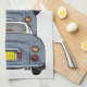 Lapis Grey Nissan Figaros Kitchen Tea Towel - un convoi de figues grises faisant ce qu'elles sont nées pour faire - convoi. Illustration dessinée à la main d'une botte de voiture Nissan Figaro 1991.