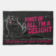Show off your bold personality and sense of humor with this “First Of All I’m A Delight” Roaring Black Cat design. Featuring a fierce yet playful black cat illustration, this artwork perfectly blends sarcasm, attitude, and cat lover humor. Ideal for anyone who embraces their confident, unapologetic charm with a touch of sass. This design makes a fantastic gift for cat moms, cat dads, animal lovers, introverts, goth aesthetic fans, sarcastic humor lovers, and anyone who relates to strong, expressive feline energy. The roaring black cat symbolizes confidence, independence, and mischief, making it perfect for everyday wear or statement décor. Whether printed on t-shirts, hoodies, mugs, tote bags, stickers, posters, phone cases, pillows, notebooks, or home décor, this versatile design stands out with a bold, clean look that works for casual outfits or fun gifts. Great for birthdays, holidays, Halloween, cat-themed gifts, or just because. Designed for comfort, style, and maximum visual impact, this artwork is perfect for anyone who loves funny cat quotes, sassy cat art, sarcastic sayings, and unique animal graphics.