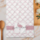 Ce design présente un flamant de style Art déco. Le magnifique design d'oiseaux tropicaux avec un motif rose et blanc à vagues fait une serviette de cuisine moderne et unique avec texte personnalisé.