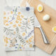 Linge De Cuisine Fleurs botaniques bleu doux et jaune