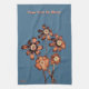 Image légèrement stylisée, marron et orange, de cinq fleurs en cônes de tarte sur un arrière - plan bleu neutre. Ajoutez votre propre texte.
