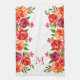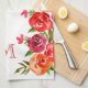 Linge De Cuisine Fleurs roses rouges orange monogrammes