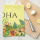 Torchon de cuisine à thème de l'île avec aquarelle fleurs tropicales et "Aloha" texte invitant
