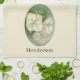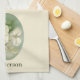 Cette serviette de thé est agrémentée d'oeuvres d'art aux couleurs pastel douces picturant trois fleurs crémeuses d'hydrangée en feuilles de chêne blanc avec des bourgeons accentués en vert et mis contre un arrière - plan couleur crème avec le texte modèle qui peut être customisé.