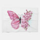 Flower arrangement of pink butterfly with rose Japanese cherry blossoms on white background.