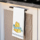 Cette amusante serviette de cuisine à chaudière à fromage présente la pièce sur une bannière enroulée autour d'un coin de fromage suisse, avec les mots "fromage le jour".