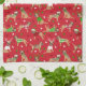 Chiens de Noël mignons en tenues de vacances festives. Bordures des Terriers portant des chapeaux de Père Noël, des bois et des chandails de Jacquard sur un arrière - plan rouge avec des ornements épars.