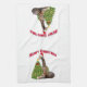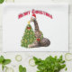Adorable Giraffe de Noël avec son chapeau de Père Noël et décoré arbre de Noël - il place l'étoile sur le sommet de l'arbre