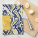 Linge De Cuisine Gras bleu jaune Abstrait Ikat Monogramme