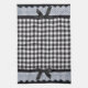 16" x 24" serviette de cuisine avec une image de guingan noir. Oeillet blanc, ruban noir et détail noir d'arc.