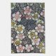 LINGE DE CUISINE HAIKU/ FLEURS DE PRINTEMPS JAUNE ROSE BLANC NOIR