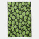 Green Basil Leaf Herb Motif Serviette de cuisine botanique. Feuilles de basilic vert dans un motif sur un arrière - plan noir.