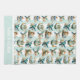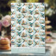 Des colibris turquoise se foulent au milieu des plateaux de thé contre un arrière - plan rayé blanc et menthe. Ton nom en bas.