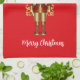La serviette de cuisine de vacances est présentée avec une impression festive de noisette de Noël. Couleur rouge Acheter tel quel ou personnaliser.