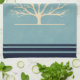 Une serviette de cuisine recouverte d'un arrière - plan vert muet est un arbre jaune clair avec 2 silhouettes d'oiseau orange sur les branches.
