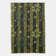 Jolie serviette de cuisine verte et marron, avec rayures et fleurs. motif Abstrait brun, vert et moutarde.