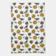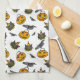 Cette serviette de cuisine amusante est équipée d'un tour rétro Jack o' Lantern ou de gâteaux, des seaux, des corbeaux et des chats noirs festifs sur un arrière - plan blanc.