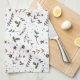 Serviette de cuisine aux motifs floraux d'inspiration estivale en bleu, vert, corail et rose. Une partie de la collection Garden Party de Parcel Studios.