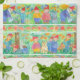 Une serviette de cuisine colorée décorée d'illustrations de gnomes sucrés dans le jardin visitant avec les insectes, arrosant les fleurs, et jouant accentué avec des fleurs de style marguerite rose melon. Amusez-vous pour tous ceux qui aiment le jardinage !